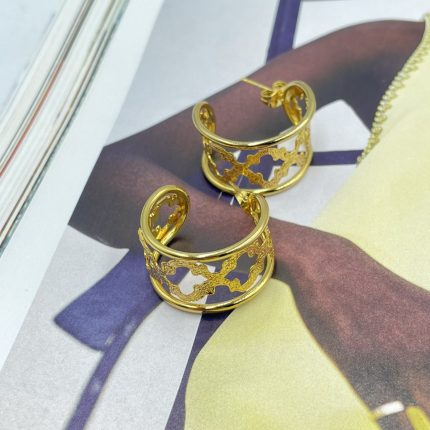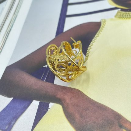 Χειροποίητο επίχρυσο σκουλαρίκι κρίκο με ανάγλυφο σχέδιο.