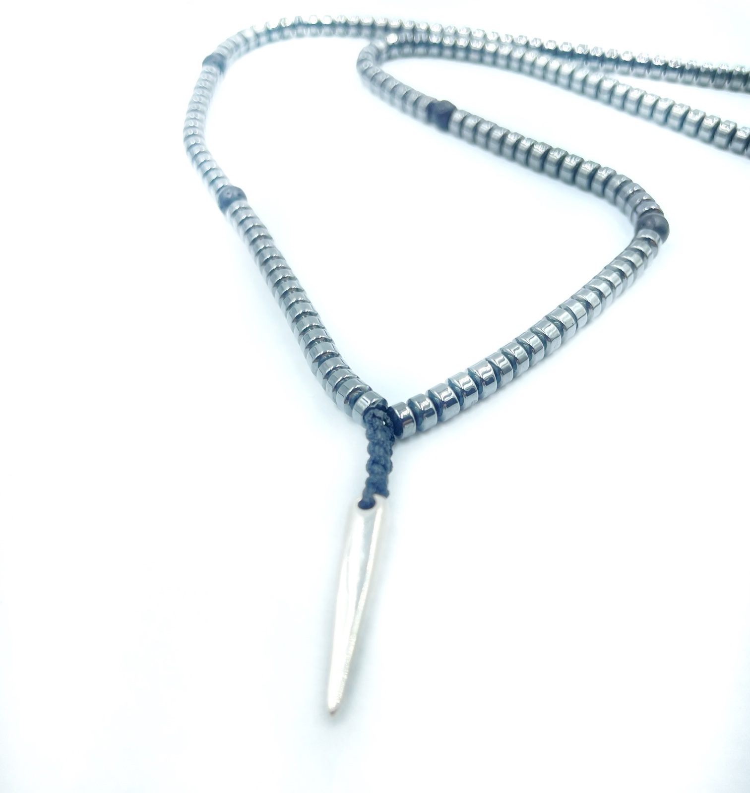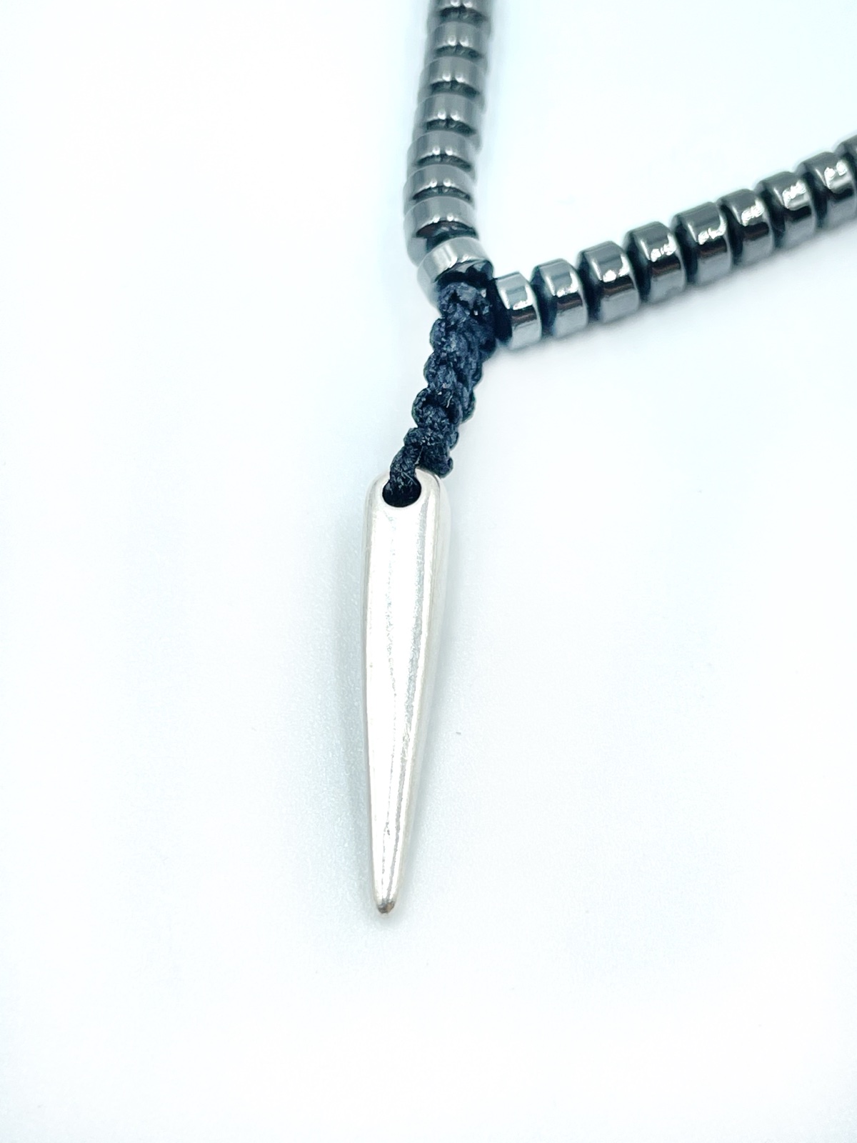 Ανδρικό χειροποίητο κολιέ με αιματίτη και ατσάλινο στοιχείο.
