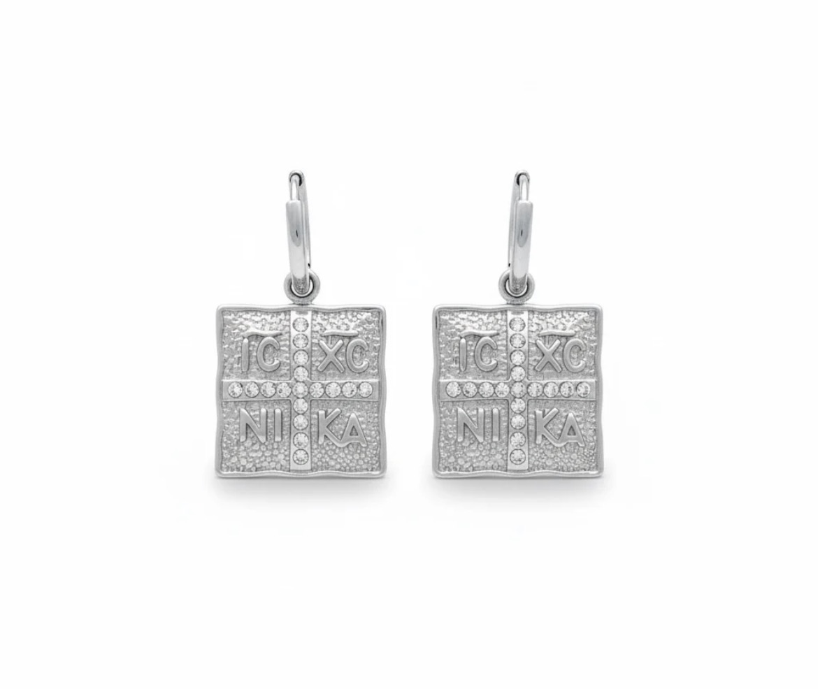 Ατσάλινα Σκουλαρίκια Κρίκοι με Κωνσταντινάτο & Σταυρό Ζιργκόν.