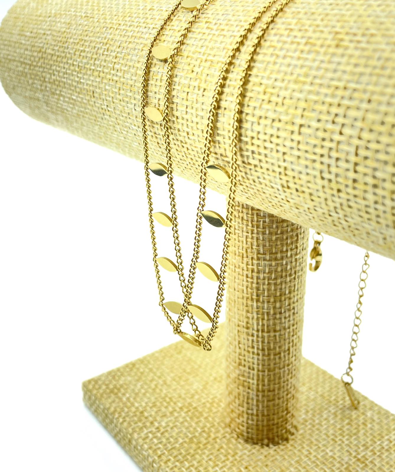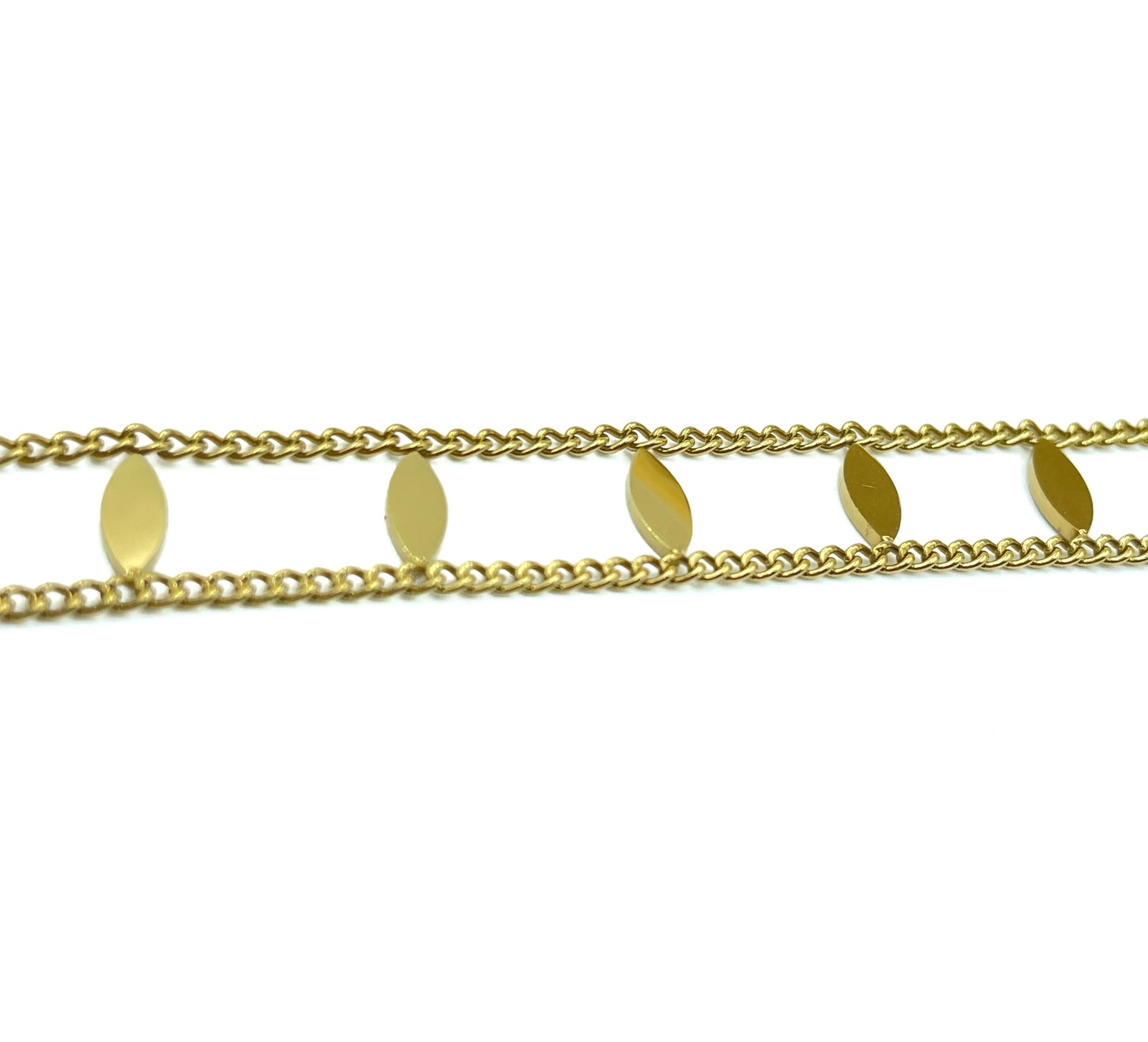 Ατσάλινη κλασική καδένα 5mm με 24κ επίχρυσο οκτάγωνο μοτίφ σε τρία χρώματα.
