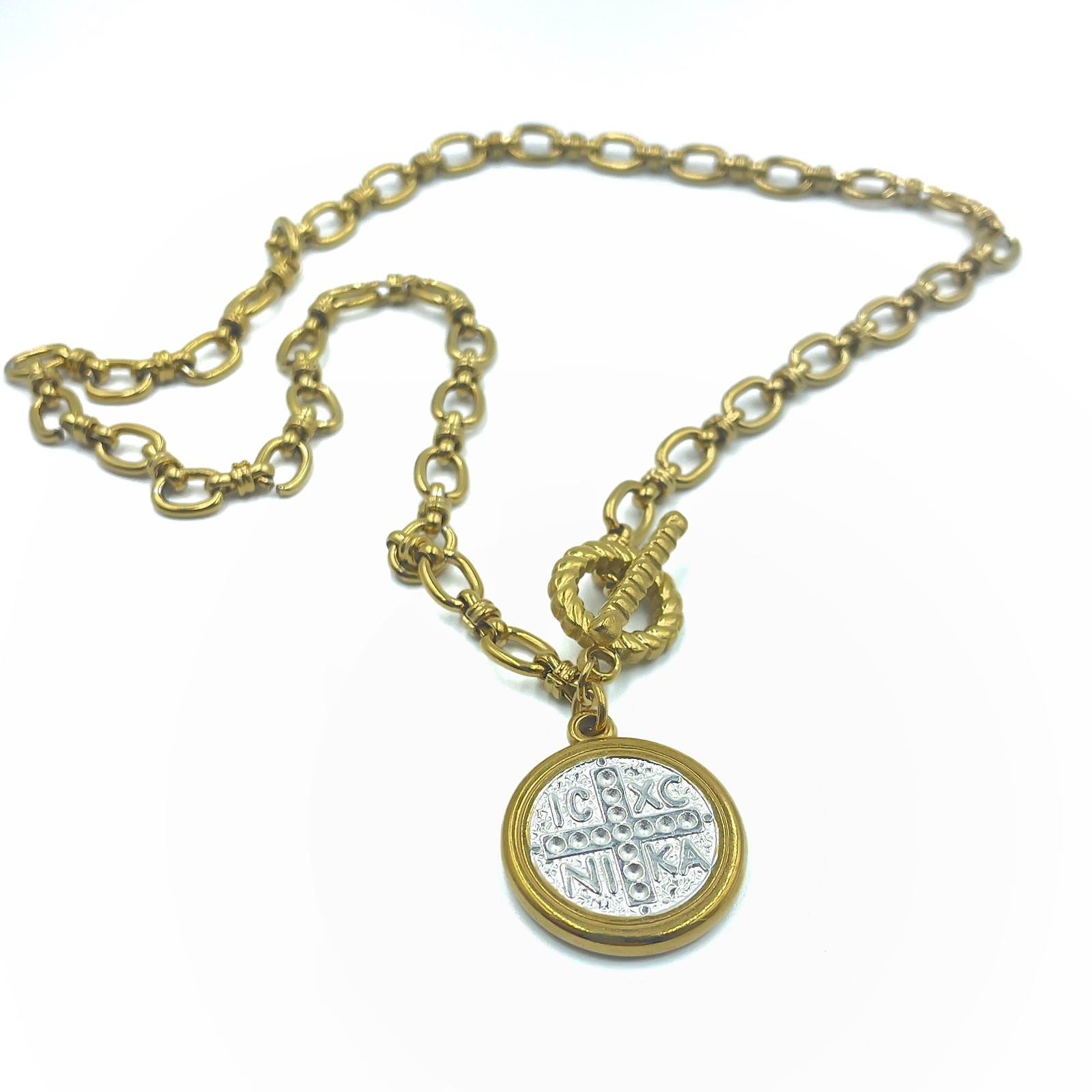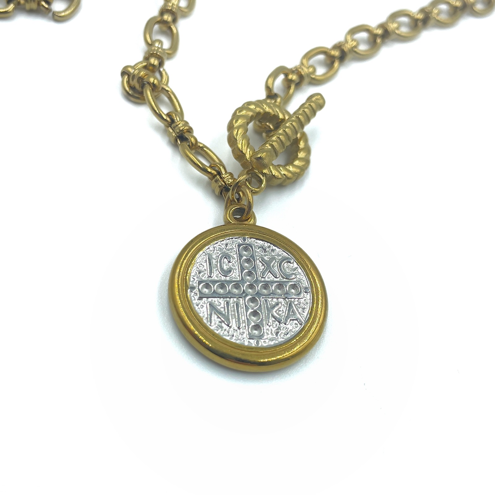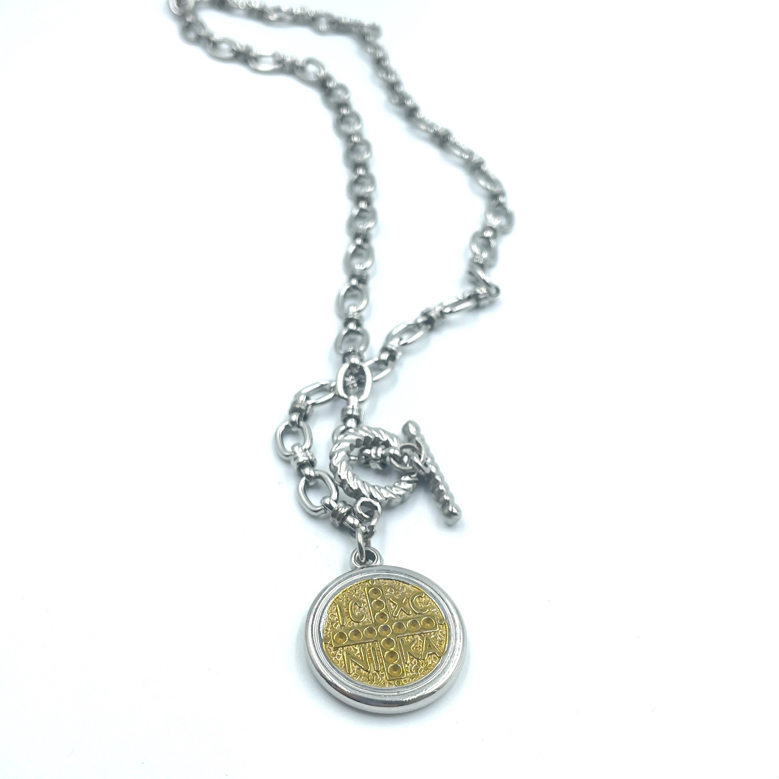 Ατσάλινη αλυσίδα χοντρή με ατσάλινο bubble στοιχείο, Άγιο Κωνσταντινάτο silver/gold.
