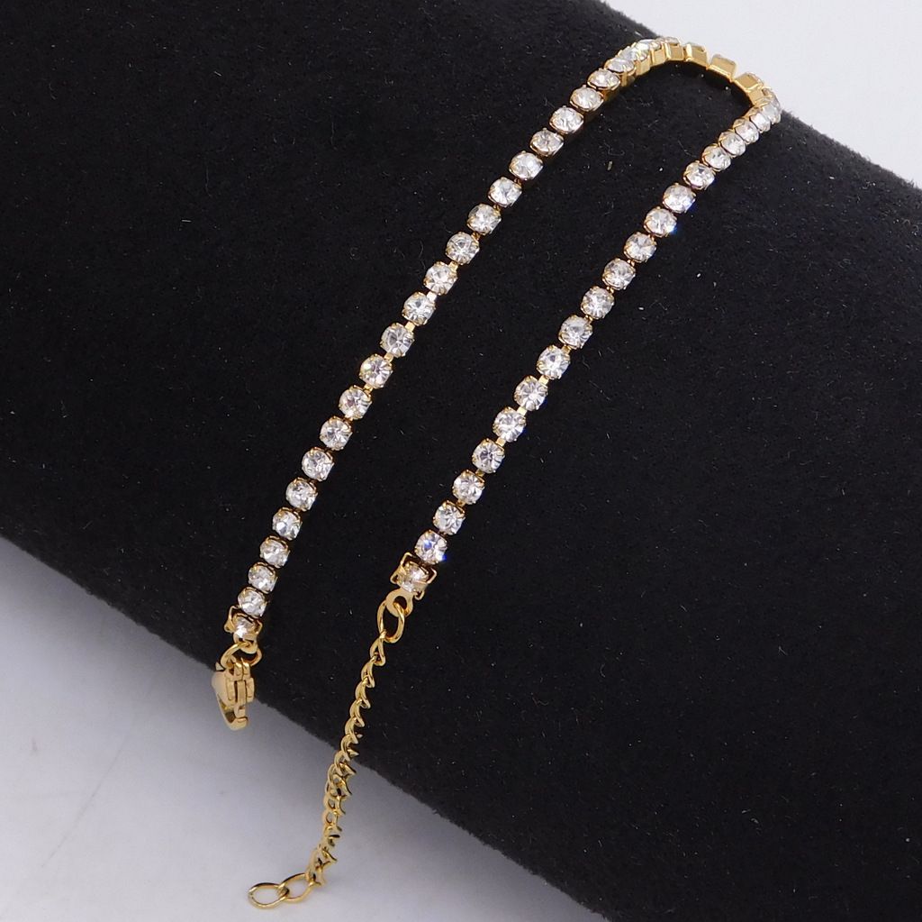 Ατσάλινο βραχιόλι με χρυσή αλυσίδα μήκους 17cm, πλάτους 2,5mm με διάφανα κρύσταλλα και ατσάλινο αλυσιδάκι προέκτασης 5cm.