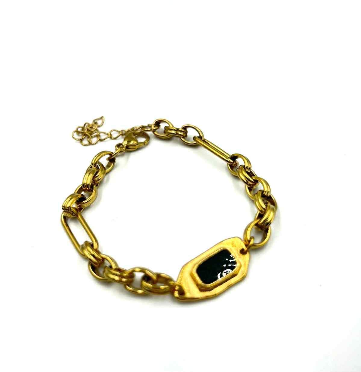 Ατσάλινο Βραχιόλι χεριού αλυσίδα με μοτίφ σμάλτου.