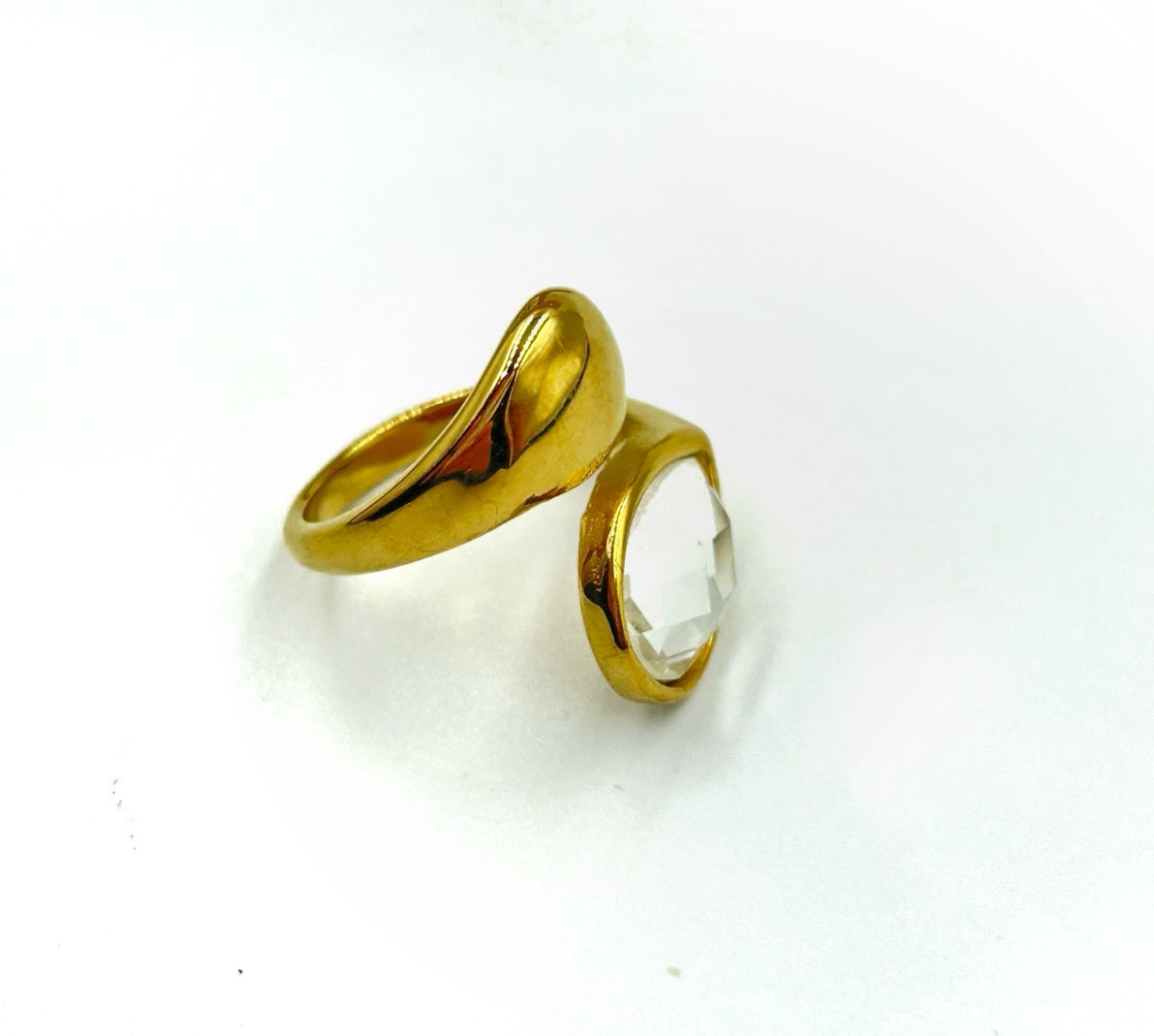 Ατσάλινο δαχτυλίδι με κρύσταλλο σταγόνα.
