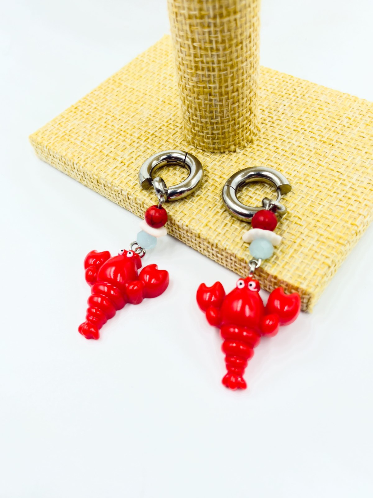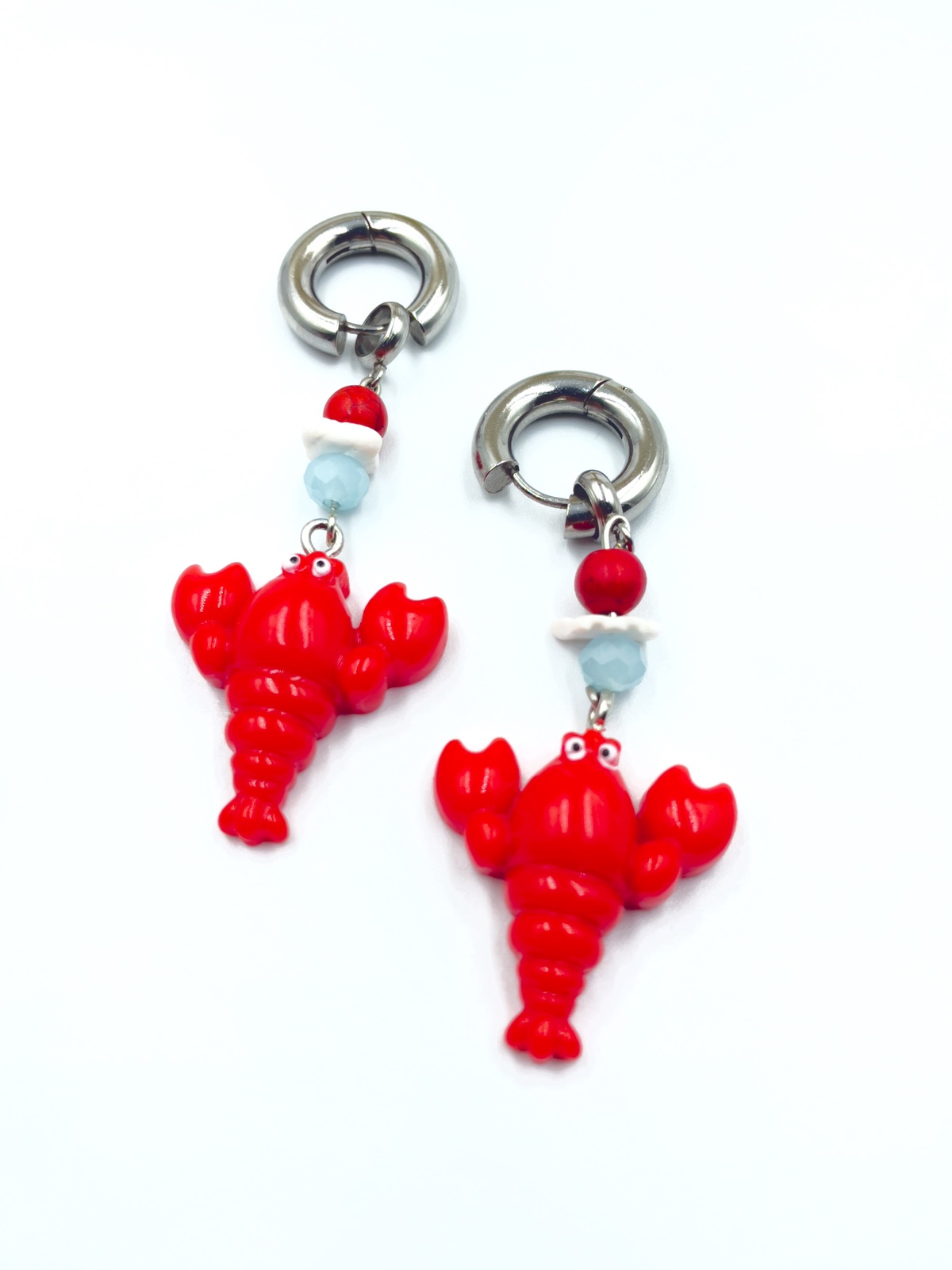Ατσάλινο σκουλαρίκι κρίκος με κρύσταλλα και μοτίφ ρητίνη αστακός.