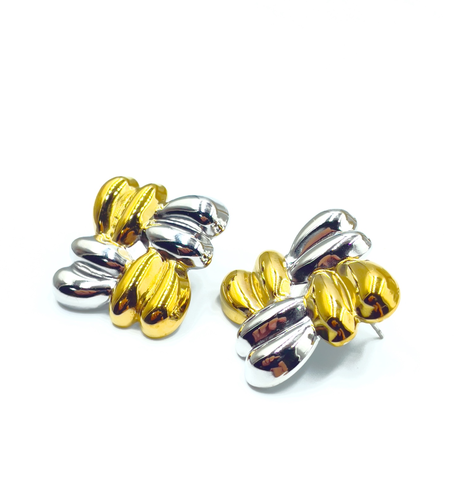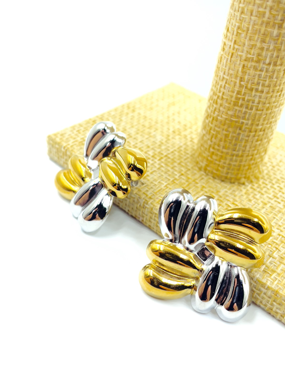 Ατσάλινο σταθερό πλεχτό σκουλαρίκι 3d gold-silver.