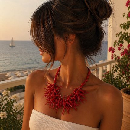 Χειροποίητο κολιέ με ημιπολύτιμες χάντρες κοράλλι.