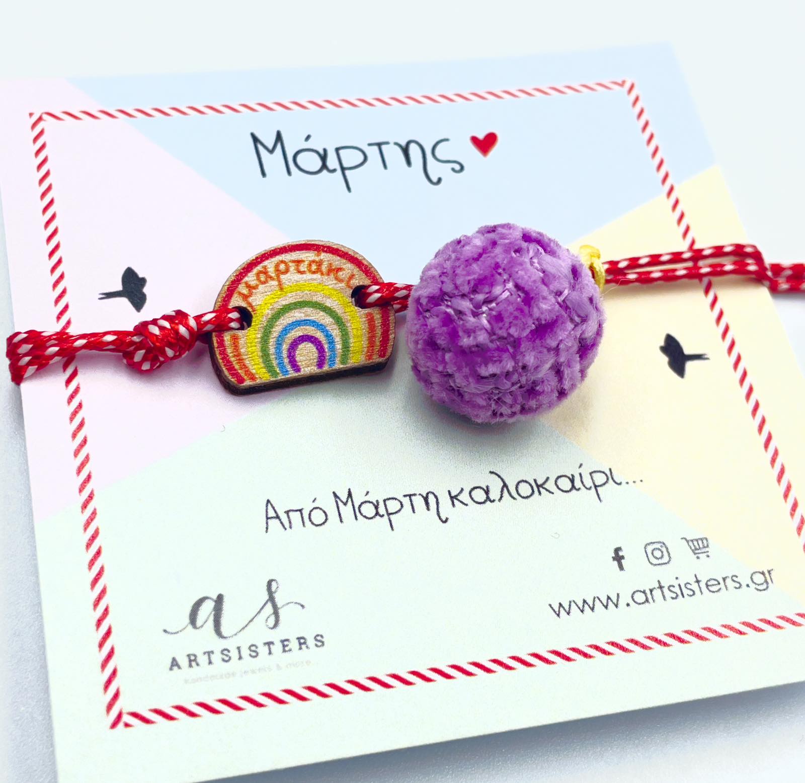 Βραχιόλι Μαρτάκι ξύλινο ουράνιο τόξο.