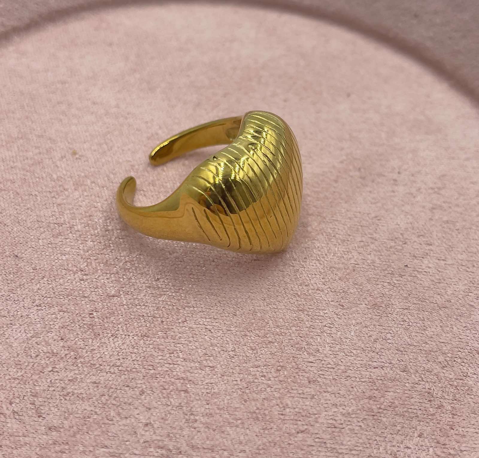 Δαχτυλίδι από ατσάλι με γραμμές σε σχήμα καρδιάς.