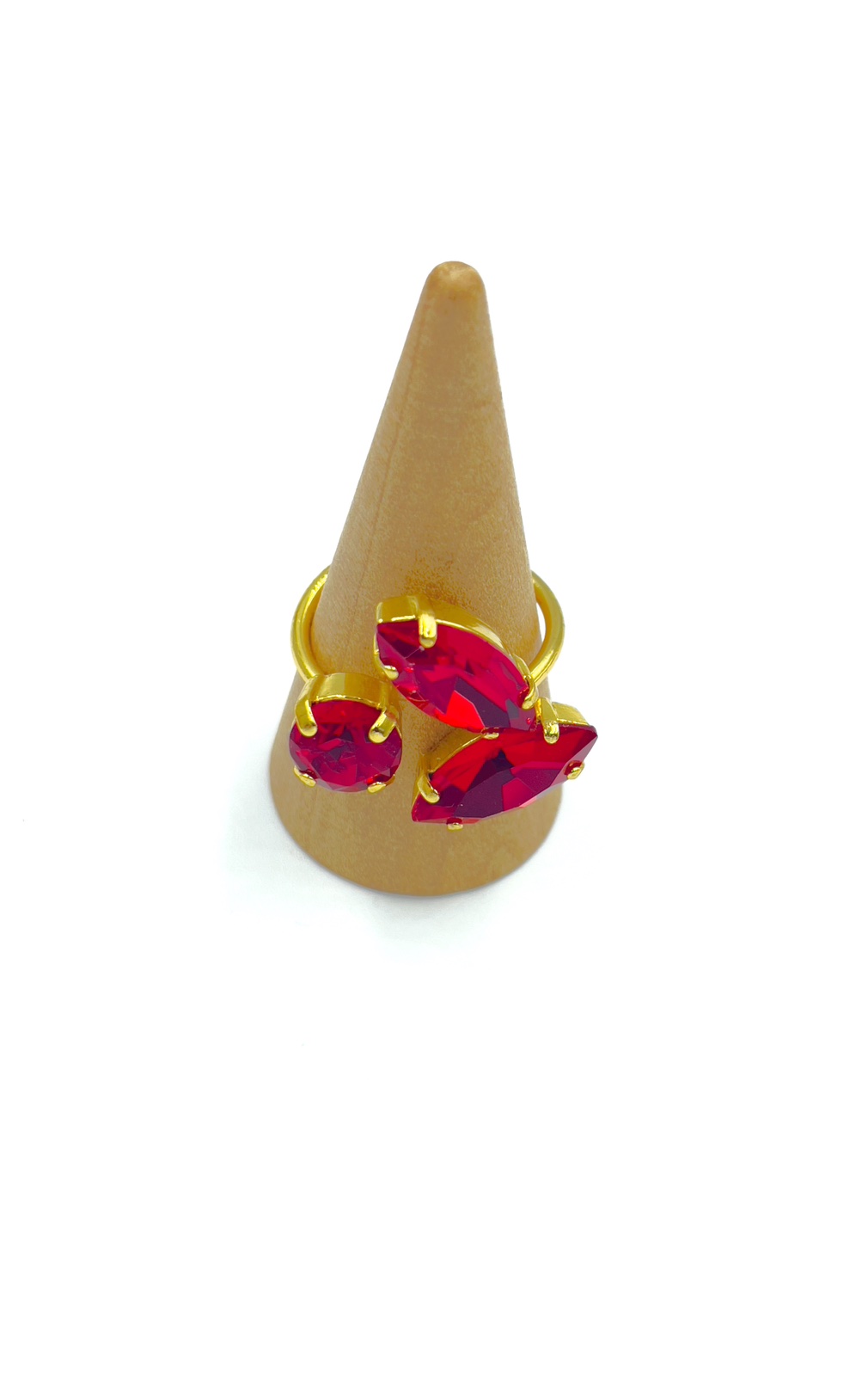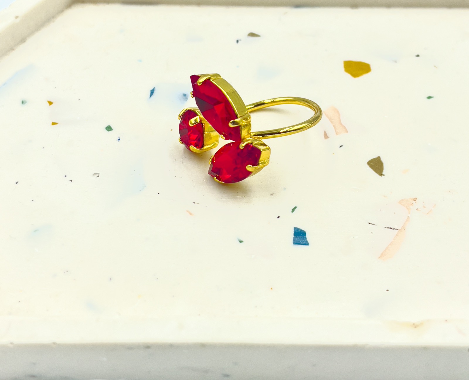και δαχτυλίδι με κόκκινα κρύσταλλα και αυξομείωση μεγέθους.