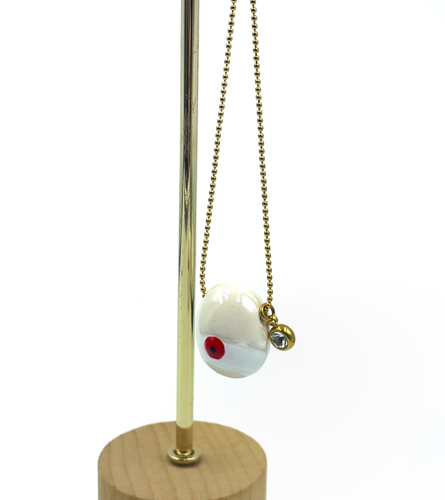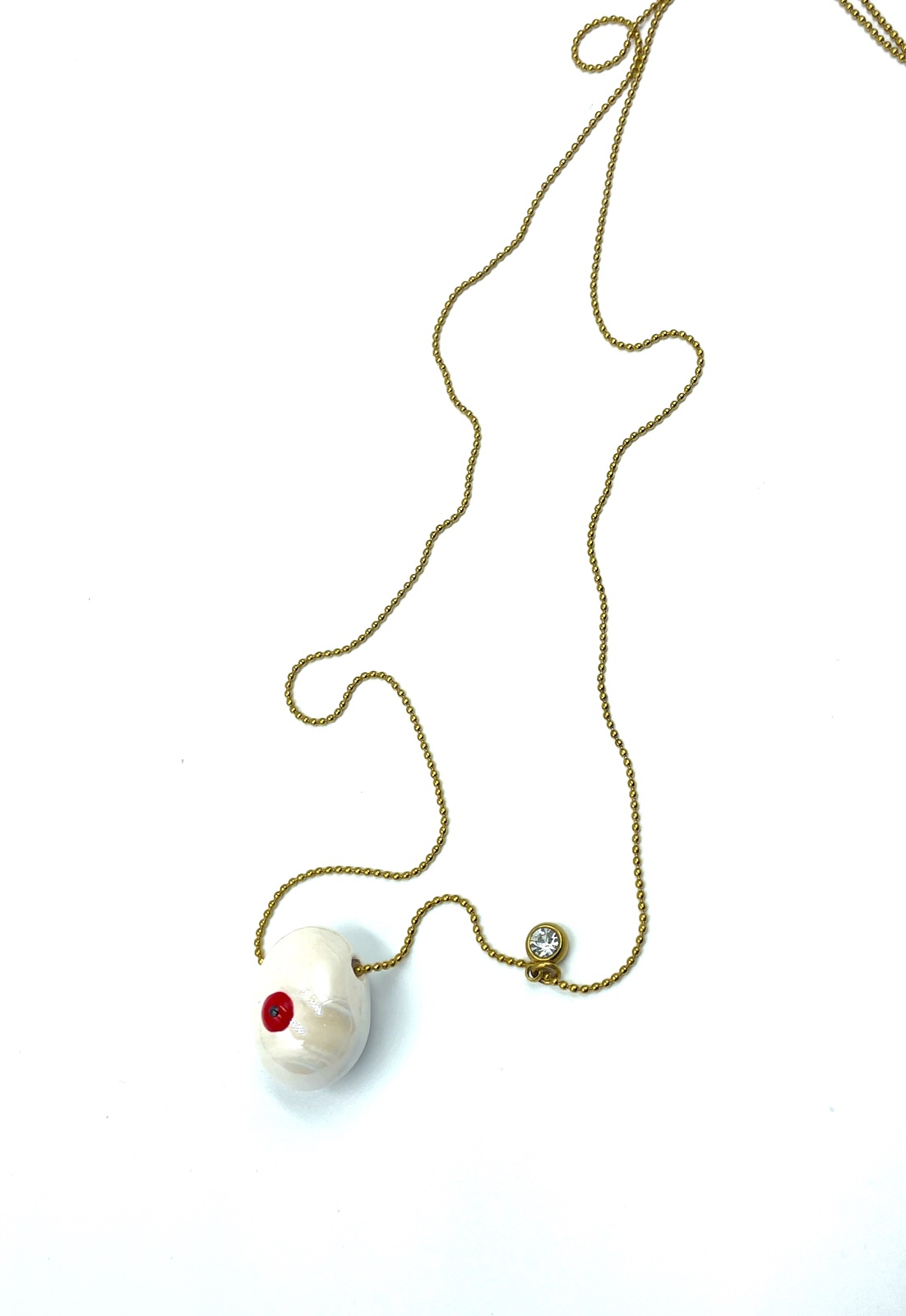 Κολιέ με πορσελάνινο αυγό λευκό και ατσάλινη αλυσίδα σε χρυσό τόνο.
