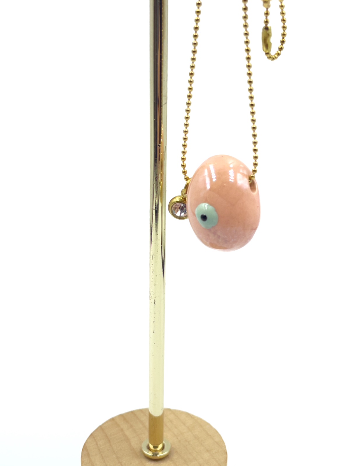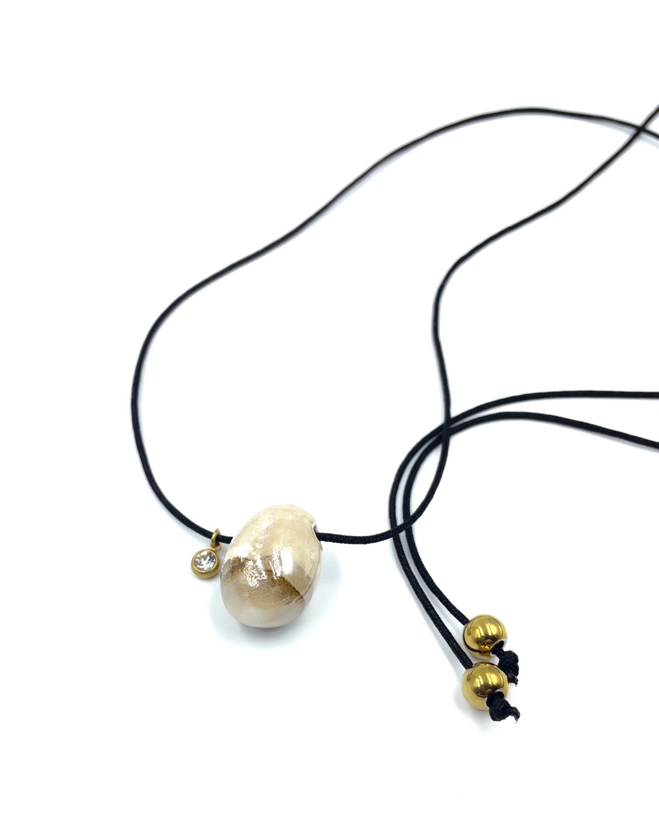 Κολιέ με πορσελάνινο αυγό σε μπεζ απόχρωση με νερά και κορδόνι με προέκταση.
