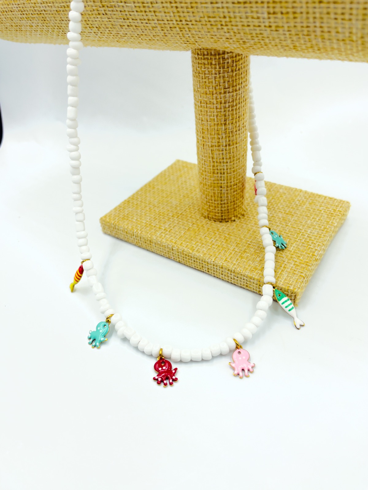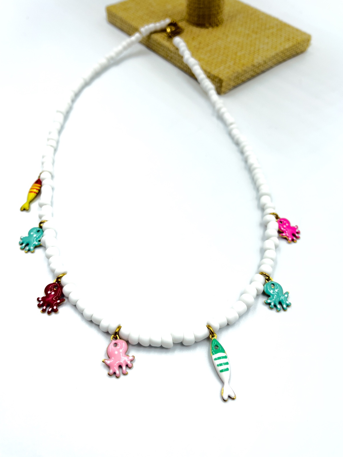 Κολιέ χειροποίητο θαλασσινό με μοτίφ σμάλτου.