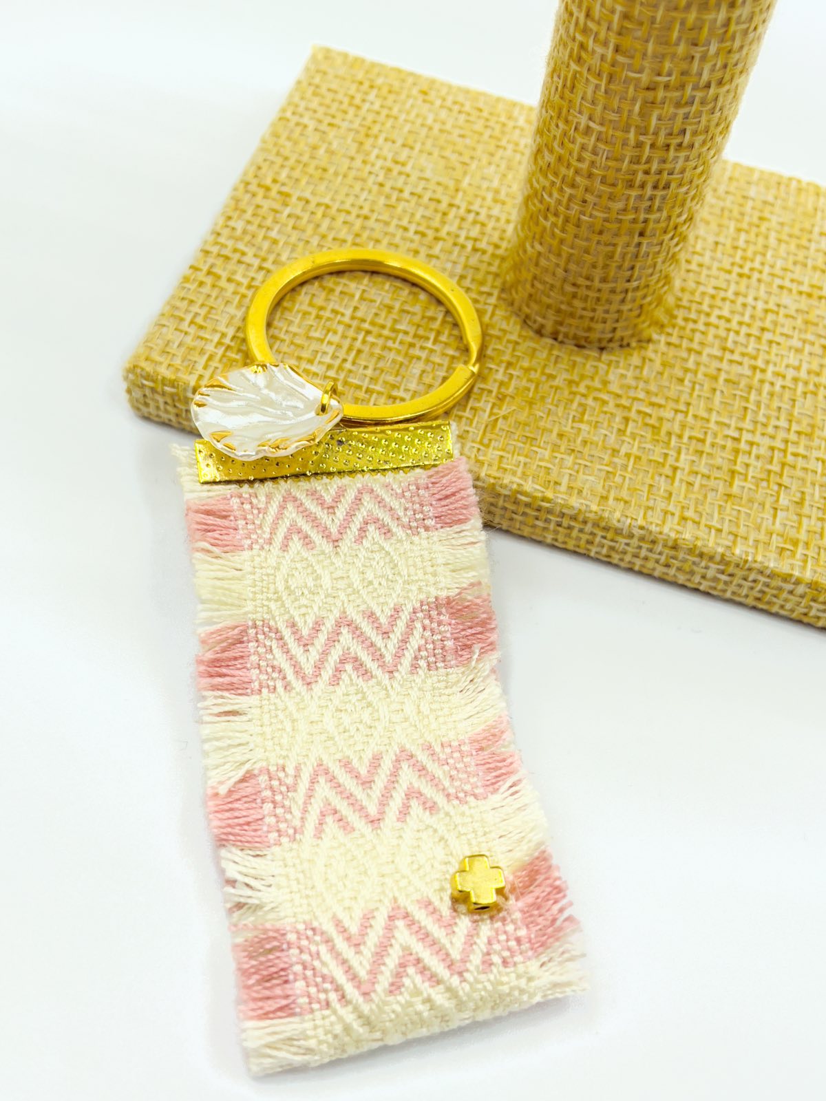 Μαρτυρικό μπρελόκ με ημιπολύτιμες χάντρες και κοχύλι με σταυρό.