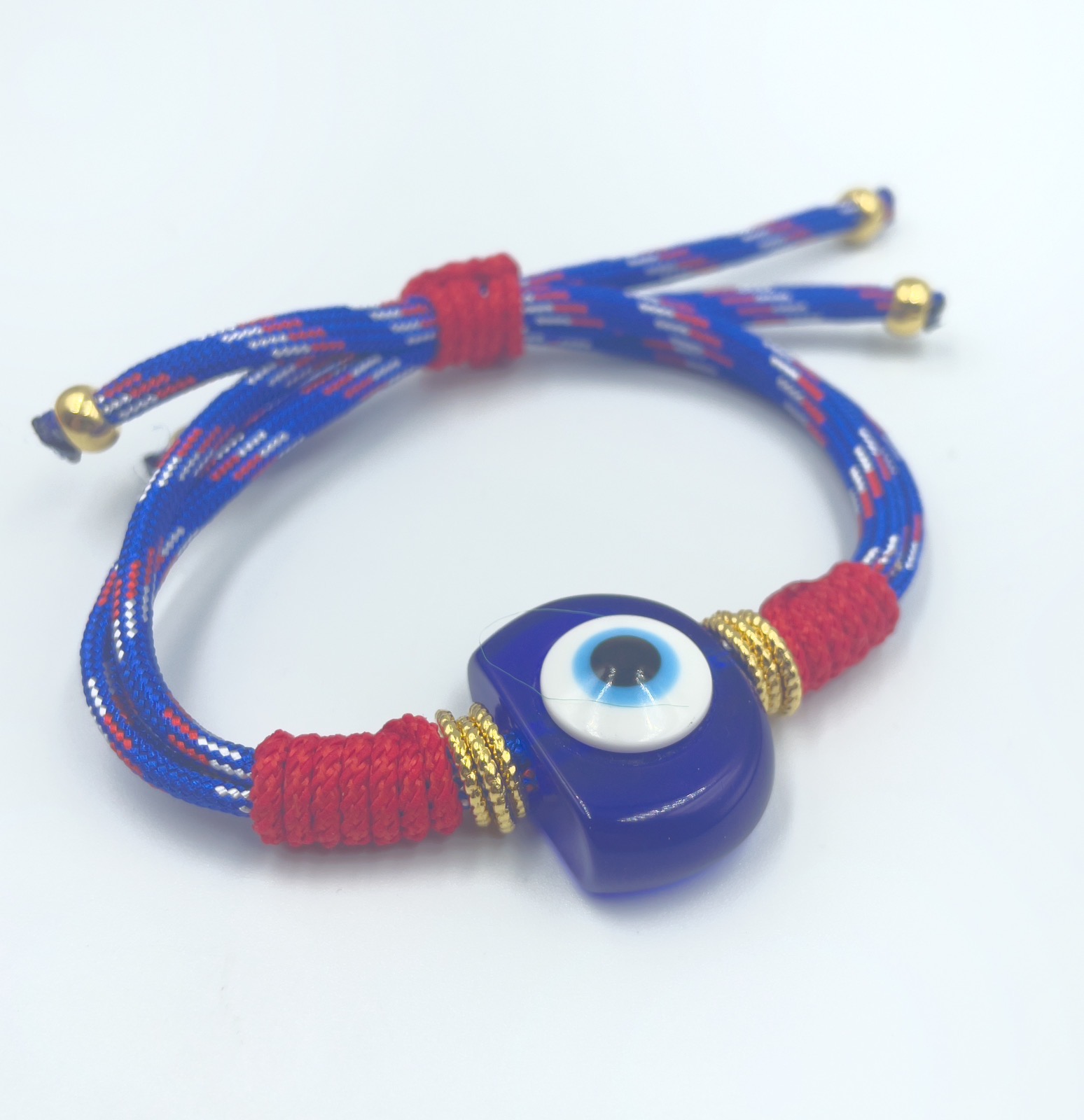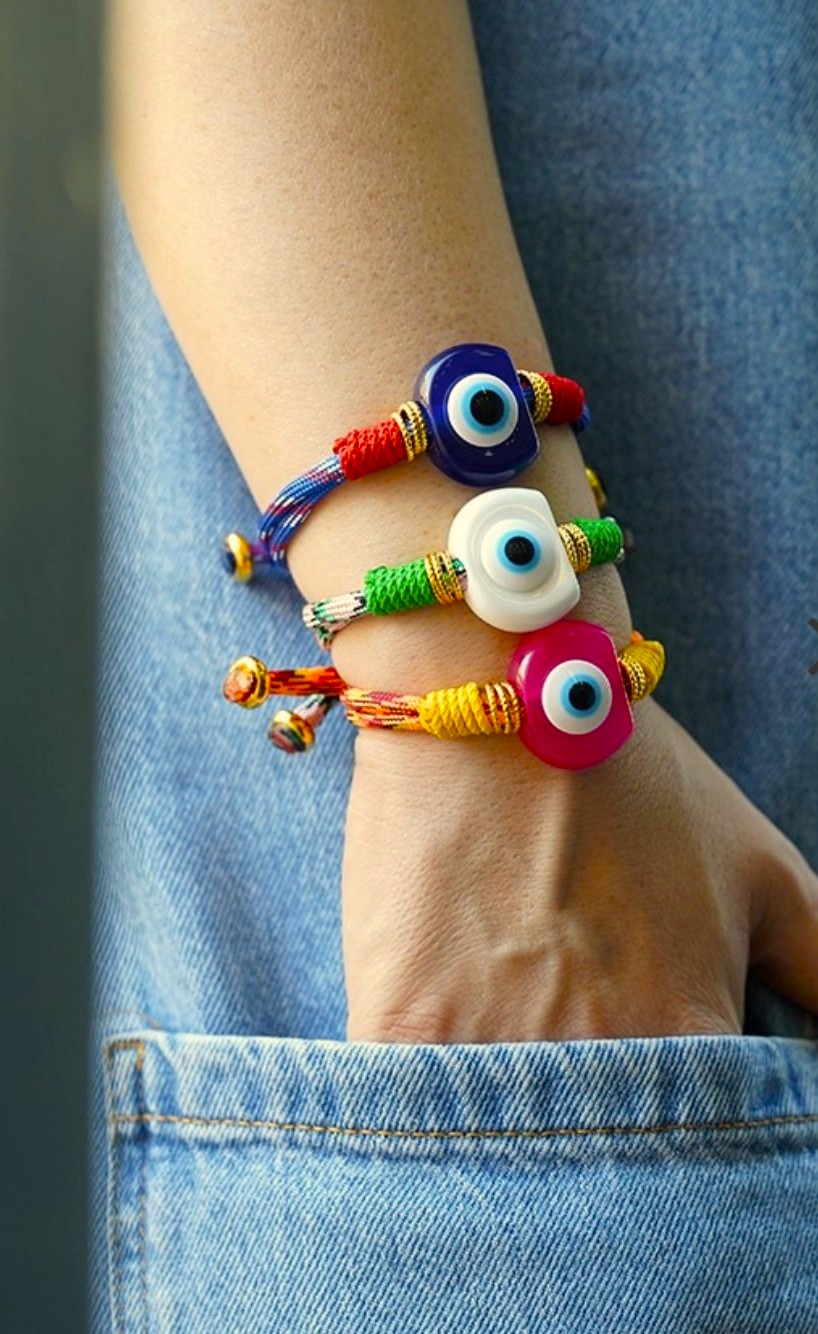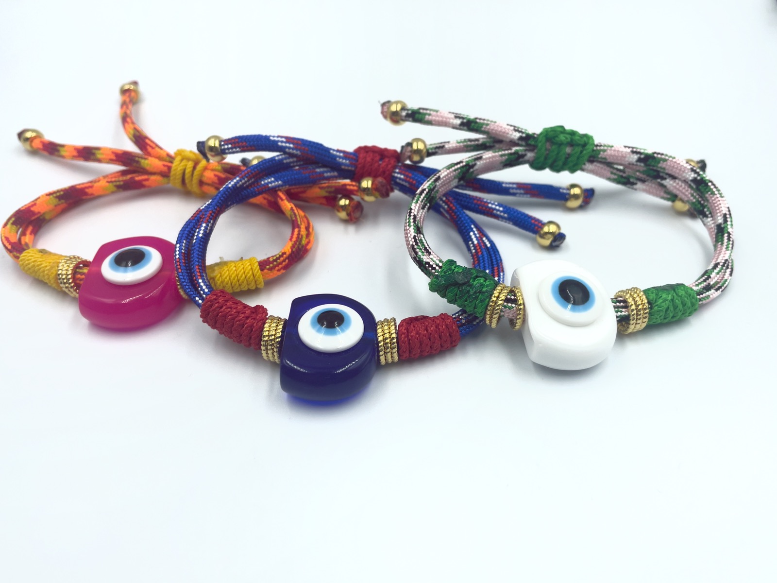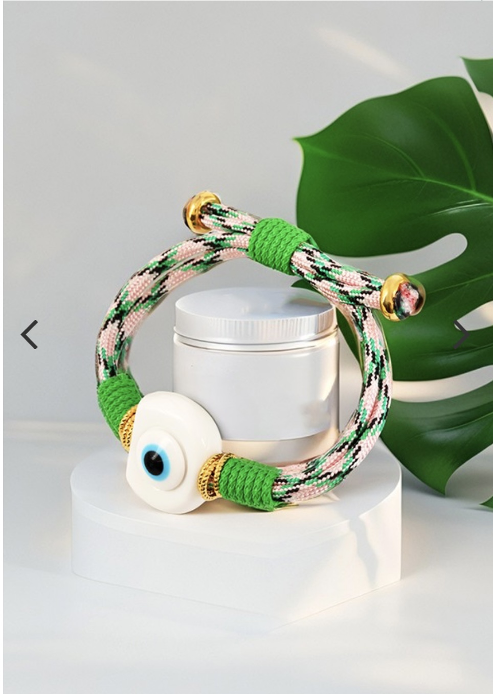 Χειροποίητο βραχιόλι με κεραμικό μάτι και χρυσά στοιχεία.