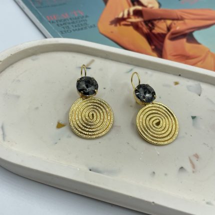 Χειροποίητο επίχρυσο δαχτυλίδι διπλό με κρύσταλλα ανθρακί με αυξομείωση μεγέθους.