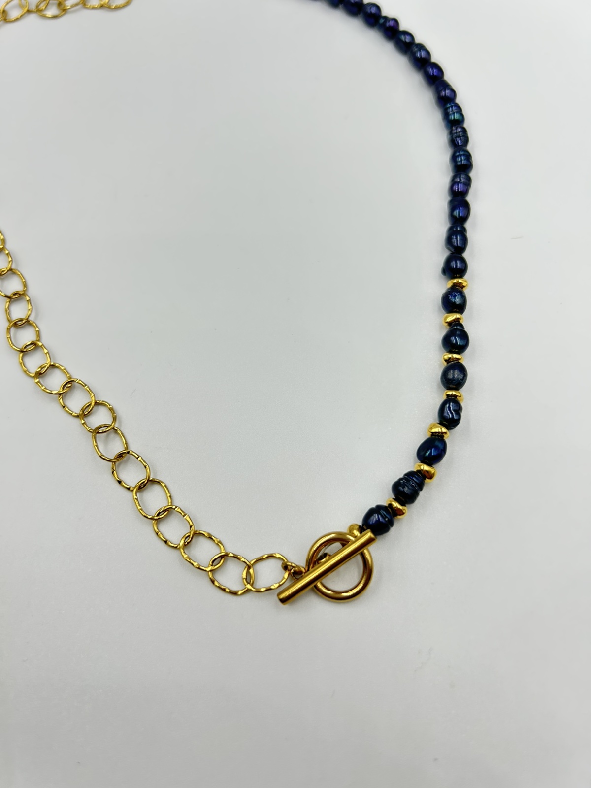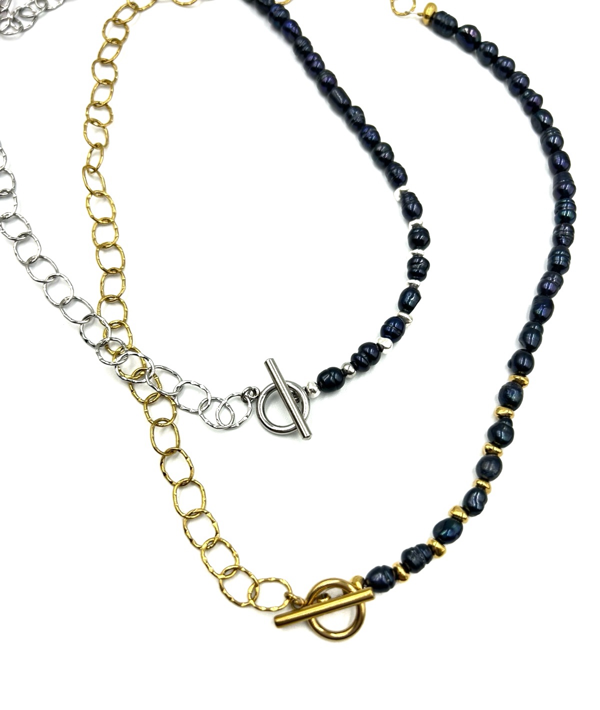 Home ΓΥΝΑΙΚΕΙΑ Αλυσιδες Χειροποίητο κολιέ αλυσίδα με κρίκους και μια σειρά μαργαριτάρι καλλιέργειας μαύρο με ατσάλινα στοιχεία.