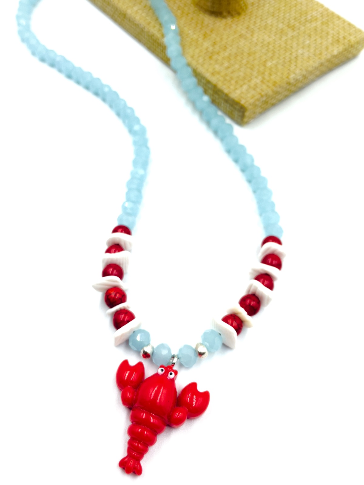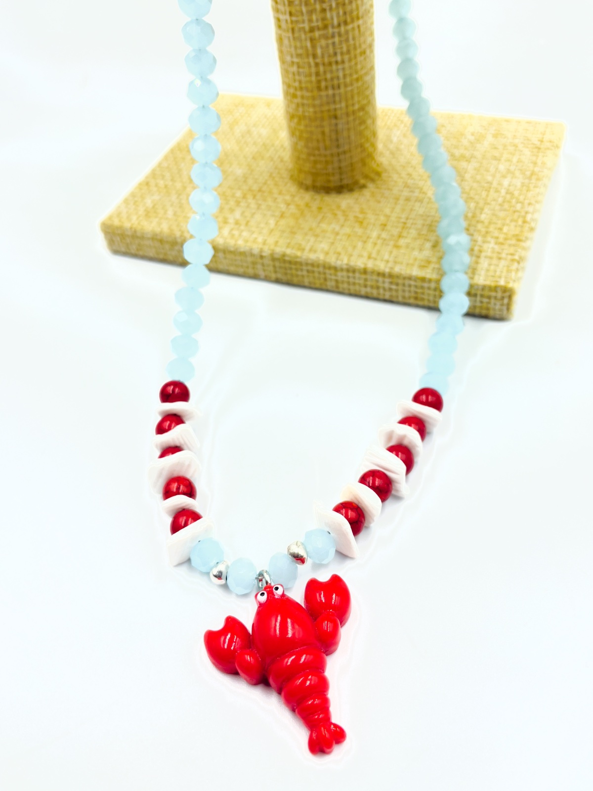 Χειροποίητο κολιέ κρυσταλλάκι με τσιπς χαολίτη και μοτίφ αστακός.