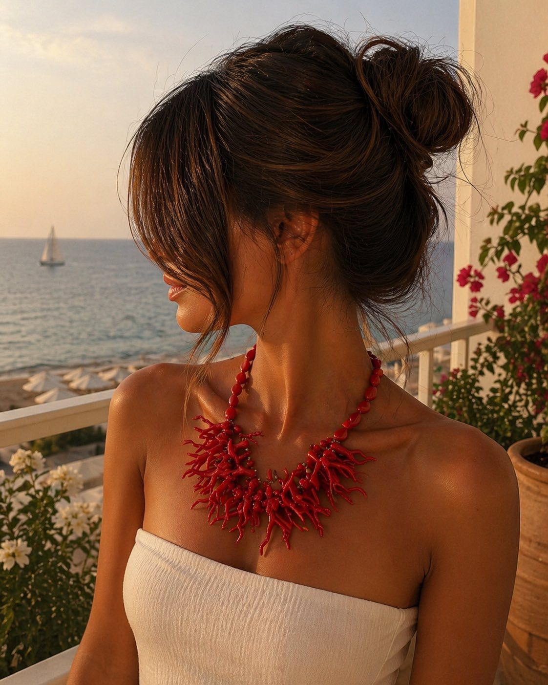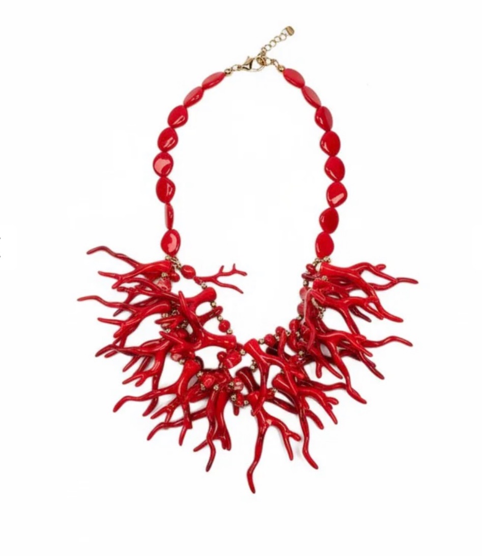 Εντυπωσιακό κόκκινο statement κολιέ, εμπνευσμένο από κοράλλι, με οργανικά κλαδιά και γυαλιστερό φινίρισμα.