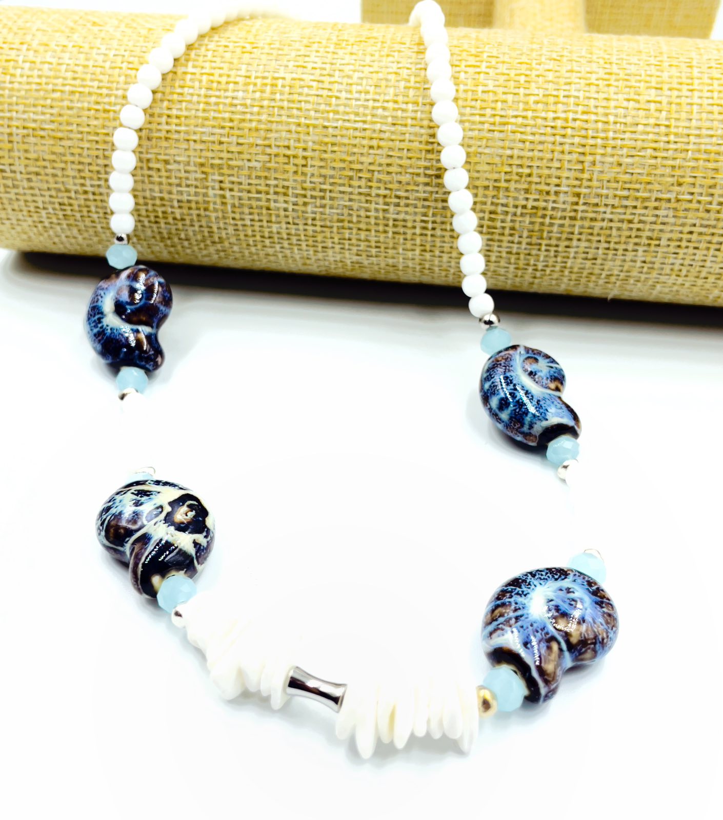 Χειροποίητο κολιέ με κοχύλια και ατσάλινα στοιχεία.
