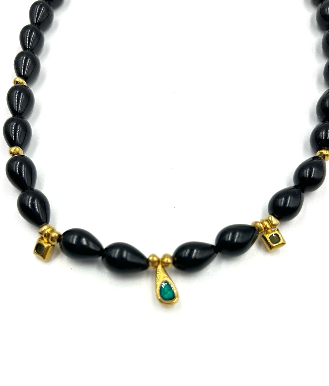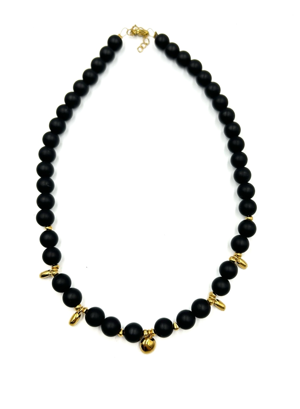Χειροποίητο κολιέ με μαύρη χάντρα χαολίτη και ατσάλινα στοιχεία.