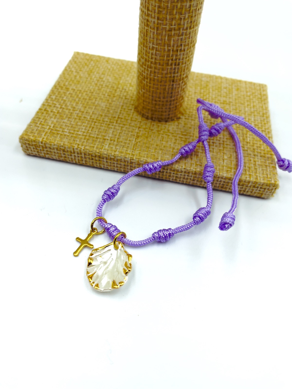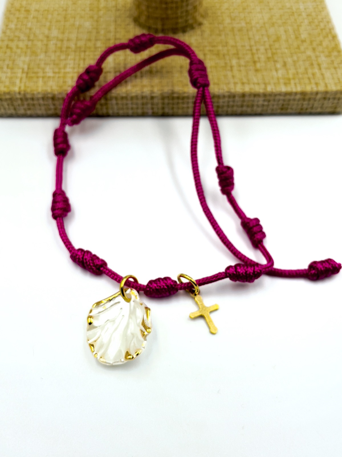 Μαρτυρικό μπρελόκ με ημιπολύτιμες χάντρες και κοχύλι με σταυρό.