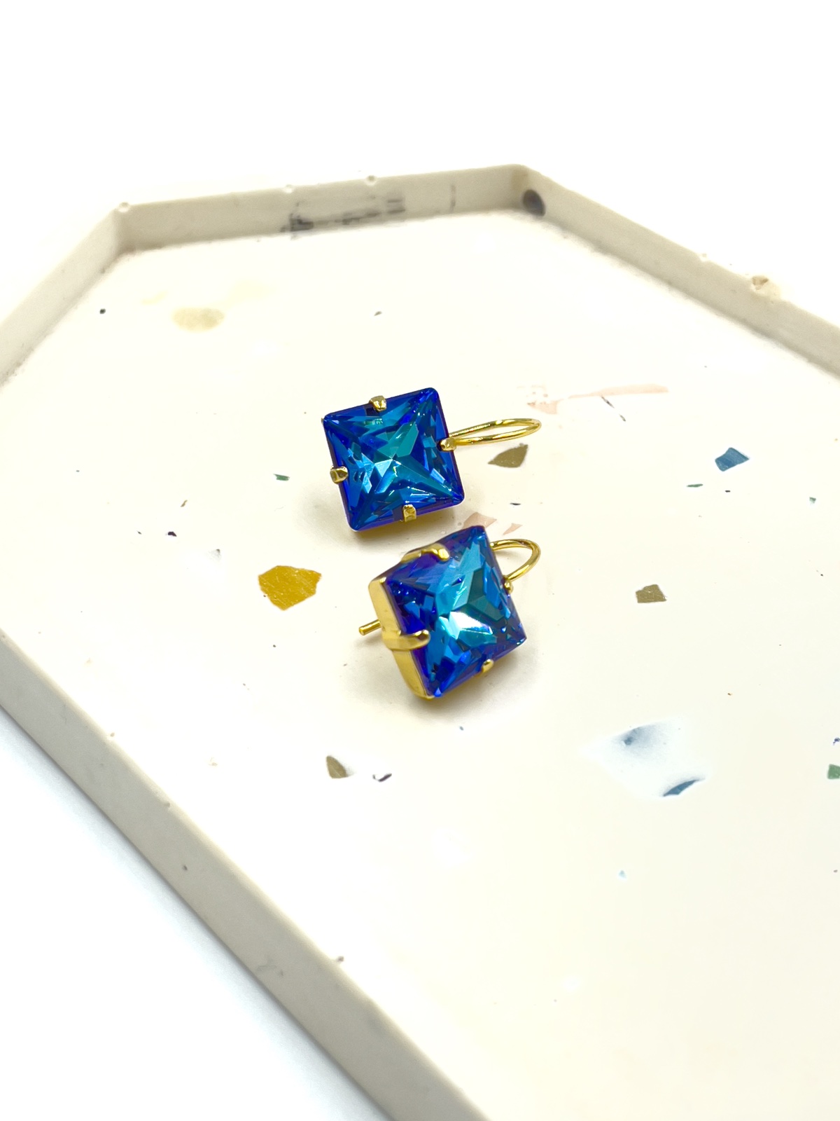 Home ΧΕΙΡΟΠΟΙΗΤΟ ΕΠΙΧΡΥΣΟ 24k ΚΟΣΜΗΜΑ Χειροποίητο σκουλαρίκι τετράγωνο κρύσταλλο μπλε ρουά.
