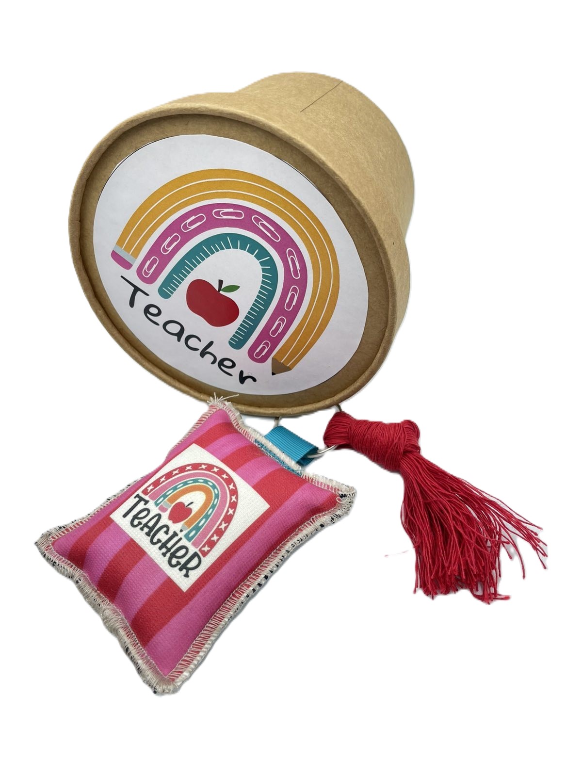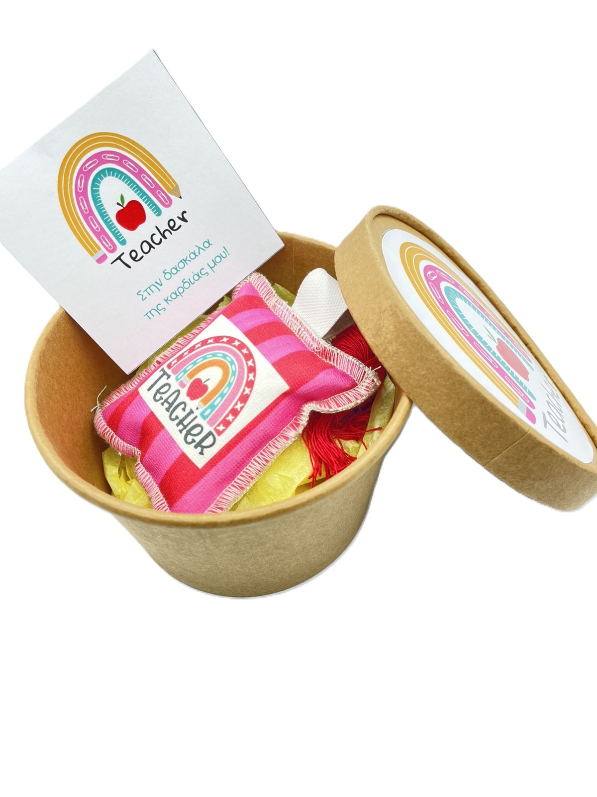 Χειροποίητο υφασμάτινο μπρελόκ με κουτί teacher και κάρτα με μήνυμα δασκάλας.
