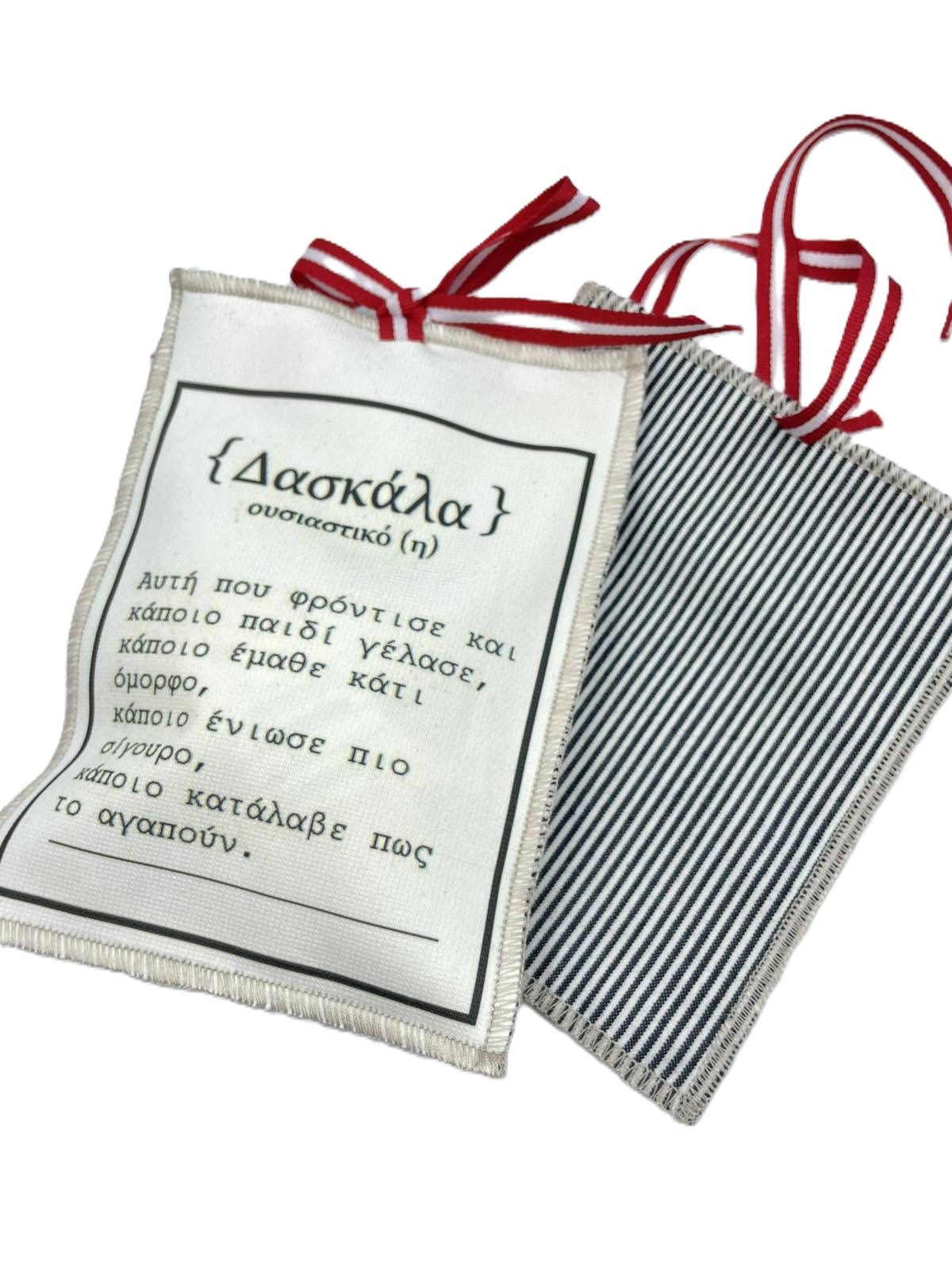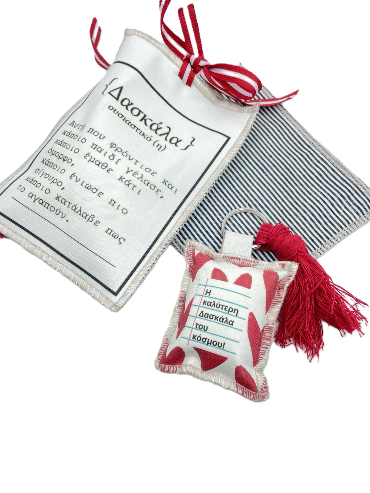 Χειροποίητο υφασμάτινο μπρελόκ με υφασμάτινο πουγκί με μήνυμα δασκάλας.